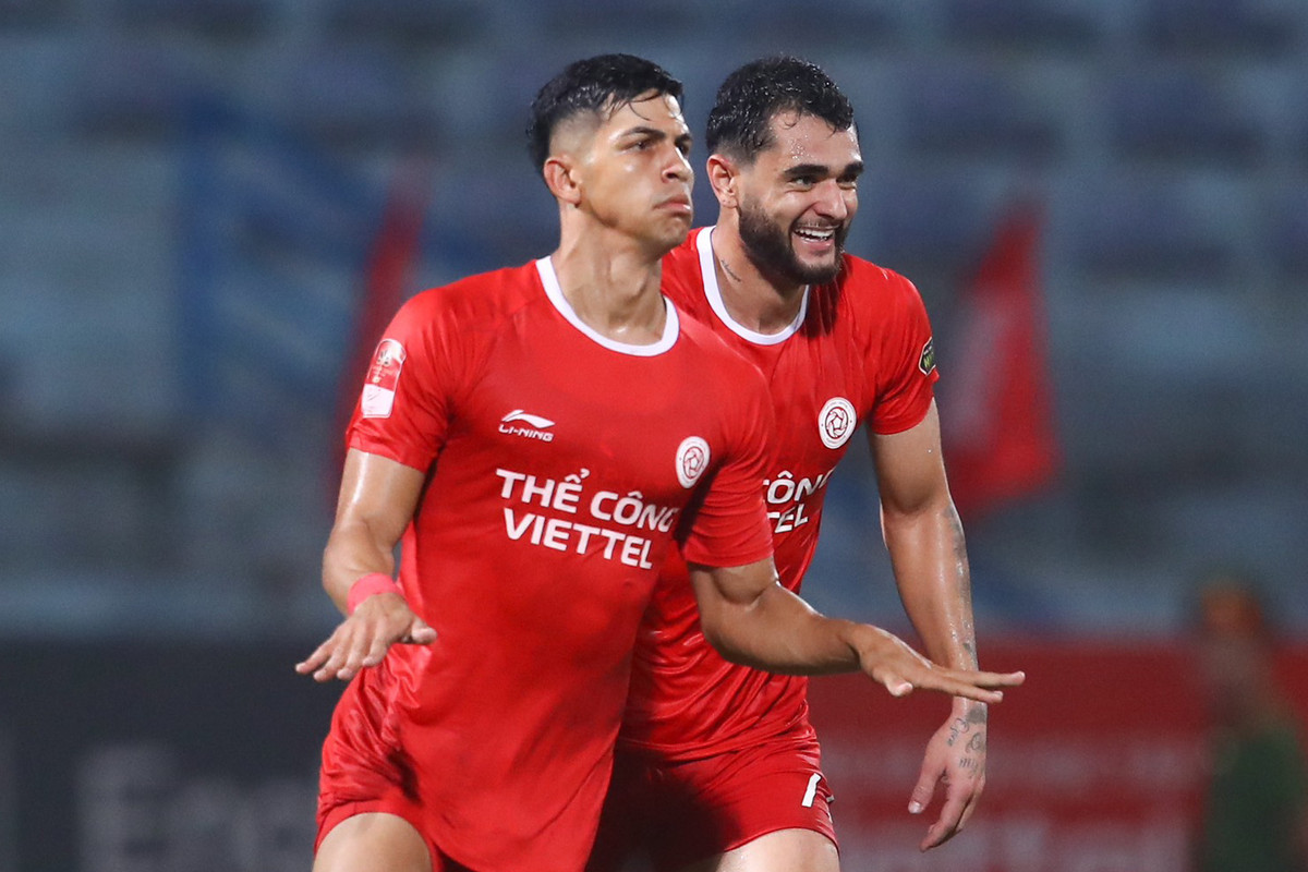 Tiền đạo người Brazil suýt có thêm bàn thắng khi Thể Công Viettel được hưởng phạt đền ở phút 81 nhưng anh lại sút trúng cột.
