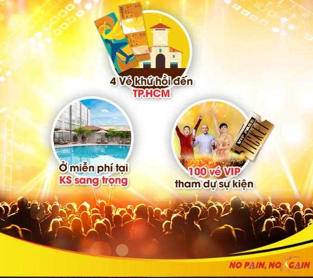 Đặc biệt nếu là 1 trong 4 nhân vật có vé VIP của chương trình, bạn sẽ sở hữu chuyến du lịch trọn gói đến TP.HCM với vé máy bay khứ hồi đến Tp.HCM và nhận phòng khách sạn miễn phí trong suốt thời gian tại thành phố. ![]() |