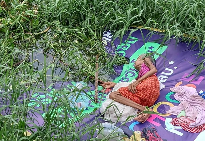 Thời điểm được tìm thấy, cụ bà chỉ có một mảnh nilon lót người, đồ dùng cá nhân và quần áo của bà được đặt xung quanh, nước từ mương nước đã tràn vào thấm ướt cả hông bà, nếu được phát hiện muộn hơn, rất có thể bà lão đã bị chết đuối.