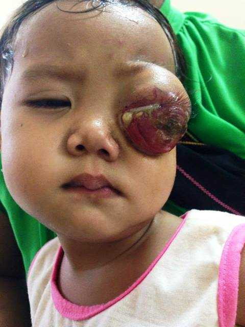 Cách đây gần một tháng, nhận thấy mắt cháu quá nặng nên ngày 25/5 chị K'Hền đưa cháu xuống Bệnh viện Mắt TP.HCM để khám. Sau khi khám, bác sĩ nhận định cháu bị u nhãn cầu trái, xâm lấn cấu trúc hốc mắt trái, nhận thấy có dấu hiệu ung thư nên yêu cầu gia đình chuyển viện sang Bệnh viện Ung bướu TP.HCM.