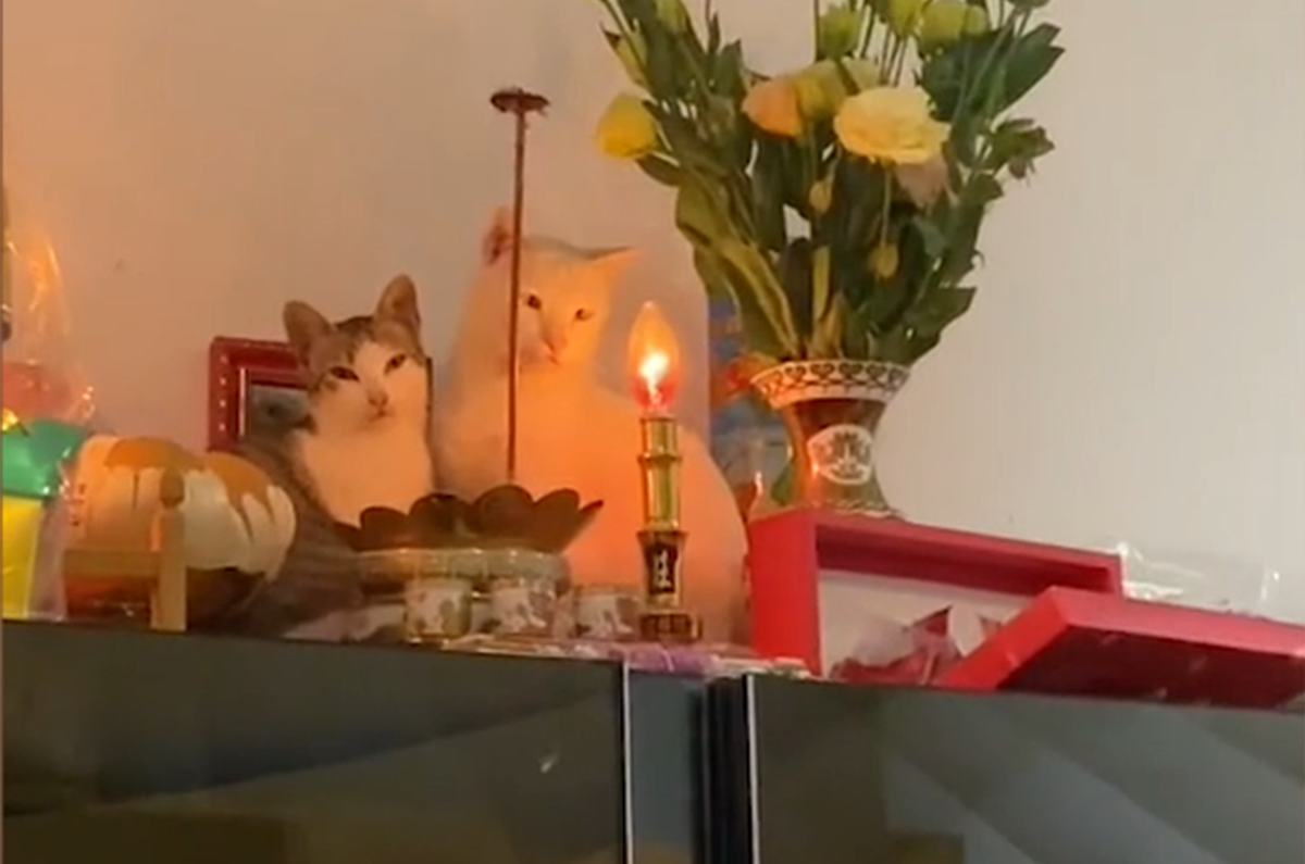 Giật mình không biết nhà mình thờ thêm "thần mèo" từ lúc nào.