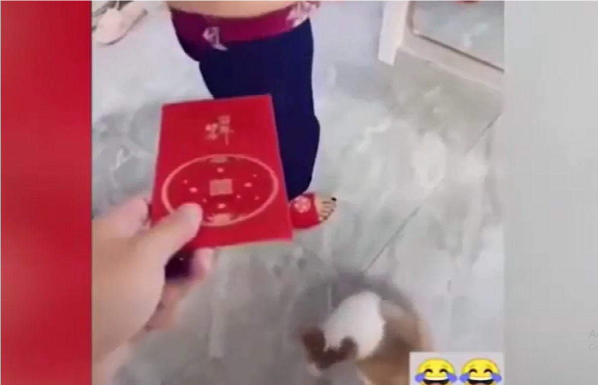 Gia chủ huấn luyện cún cưng nhận lì xì ngày Tết
