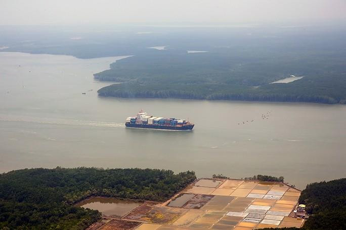 Tàu chở hàng trên biển Cần Giờ và sông Sài Gòn. (Ảnh Hoàng Triều)
