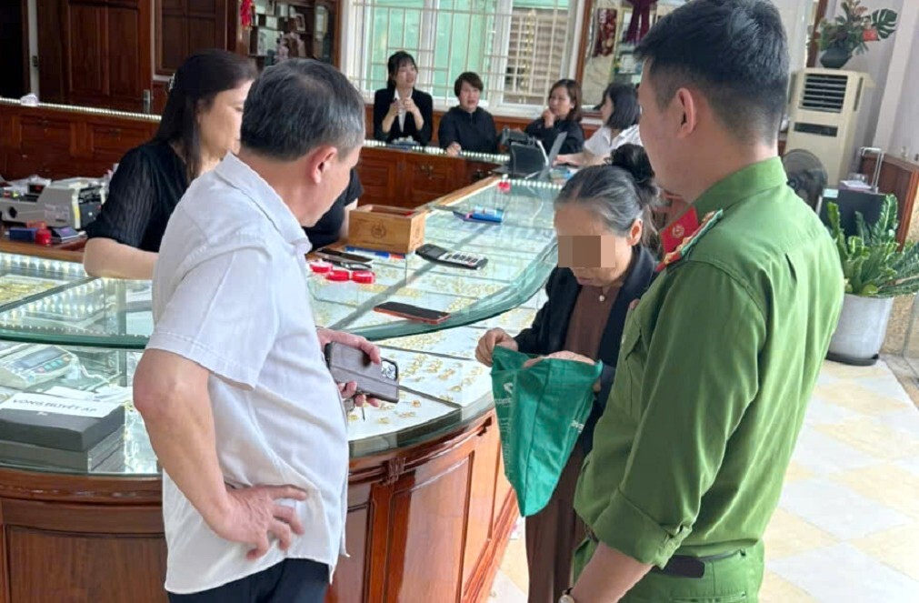 Tin lời “công an” giả, cụ bà 70 tuổi ở Nghệ An mang 19 chỉ vàng đi bán để chuyển tiền nhưng được công an kịp thời ngăn chặn.