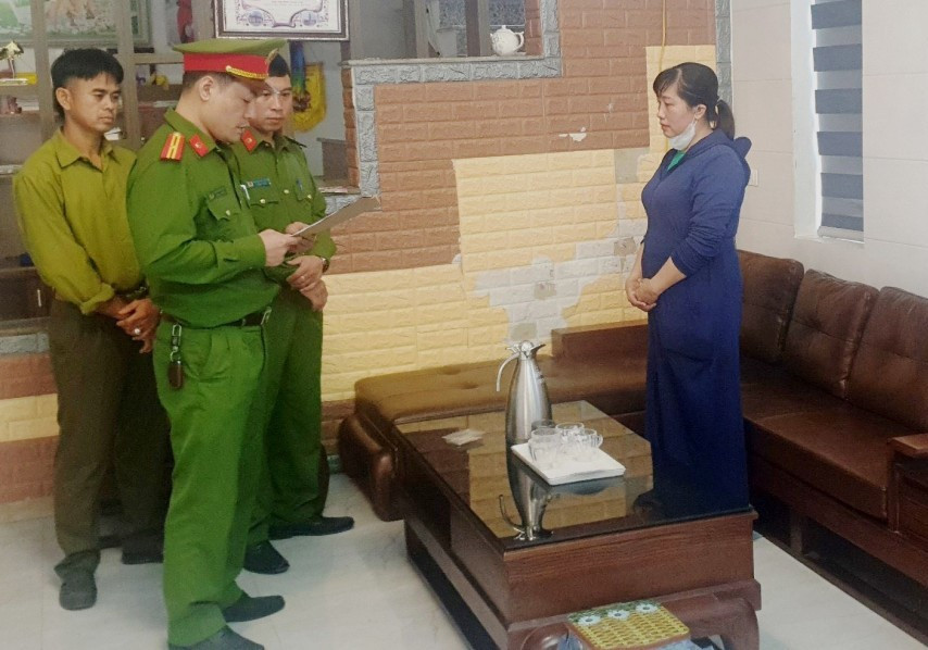 Cơ quan chức năng tống đạt quyết định khởi tố Phùng Hà Trang . (Ảnh: Công an Hà Tĩnh)