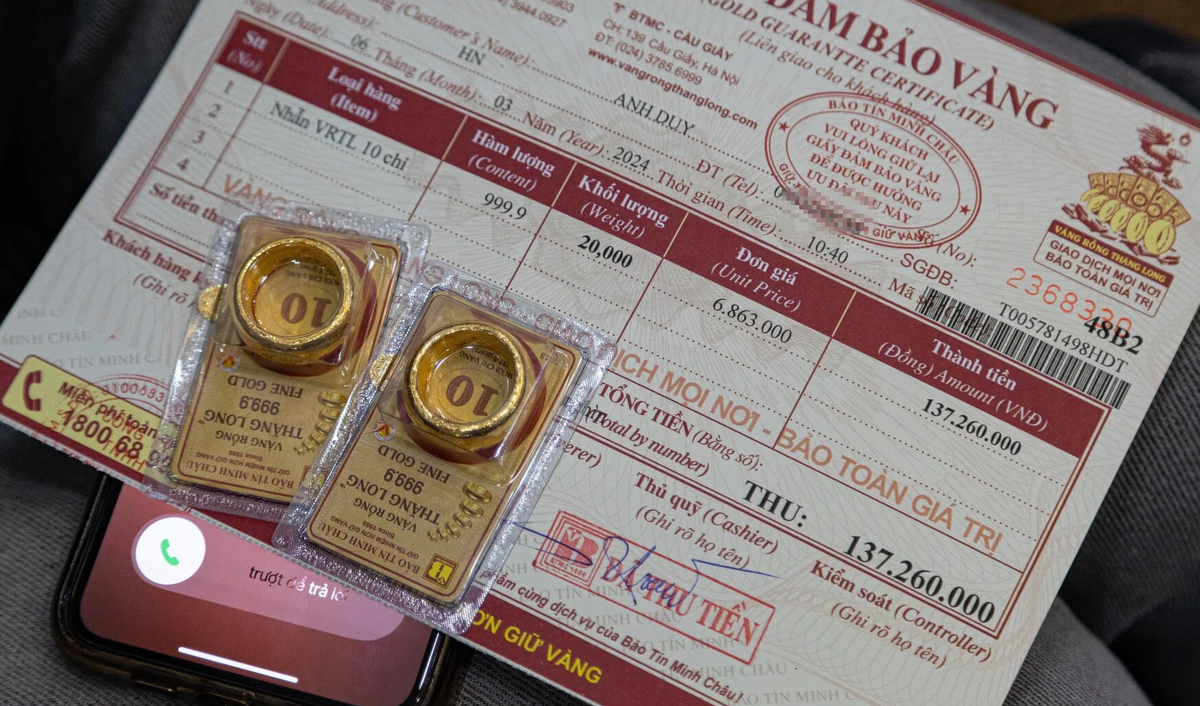 Tuy vàng nhẫn đắt đỏ như thế nhưng gần đây lại xuất hiện hiện tượng khan hiếm vàng nhẫn. Khảo sát PV VTC News cho thấy, không ít lần các cửa hàng lớn trên phố Trần Nhân Tông, Cầu Giấy…(Hà Nội) phải thông báo hết vàng nhẫn tròn trơn khi khách hỏi mua.