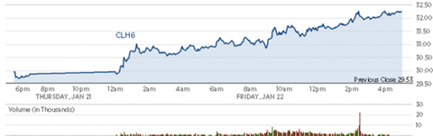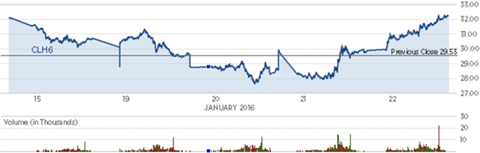Sau chuỗi ngày "lao dốc", trong phiên cuối tuần, giá dầu tăng vọt xuyên mốc 32 USD/thùng nhờ đợt rét sâu.
