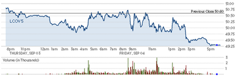 Giá dầu Brent giao tháng 10 giảm 1,07USD, tương đương 2,1%, xuống 49,61USD/thùng trên sàn ICE Futures Europe.