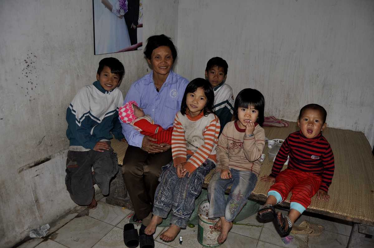 Các cháu con nhỏ trong số 14 người con của chị Hải