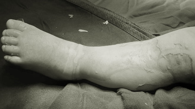 Theo tiến sĩ, bác sĩ Lê Ngọc Duy, Giám đốc Trung tâm Cấp cứu và Chống độc Nhi khoa, Bệnh viện Nhi Trung ương, bệnh nhi được đưa tới Bệnh viện Sản Nhi Bắc Giang ngày 9/3 do bị bỏng nước sôi ở vị trí đùi và cẳng chân phải. Trước đó gia đình đưa trẻ sang bà lang gần nhà để đắp thuốc. Tới khi trẻ lên cơn sốt cao, nổi ban 4 ngày sau đó gia đình mới đưa đến bệnh viện tuyến huyện.