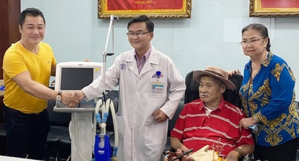 Diễn viên Lý Hùng cùng bố mẹ đến trao máy thở cho Bệnh viện Chợ Rẫy.