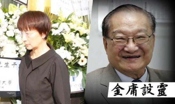 Vợ Kim Dung xuất hiện chớp nhoáng ở lễ tang. Bà là người chăm sóc ông những năm cuối đời. Hai người không có con chung.