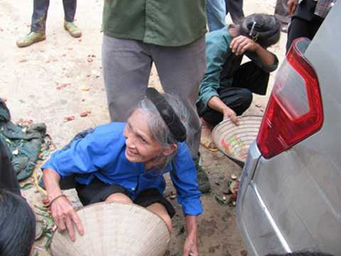 | Một cụ già chuẩn bị sang Trung Quốc cõng hàng. |