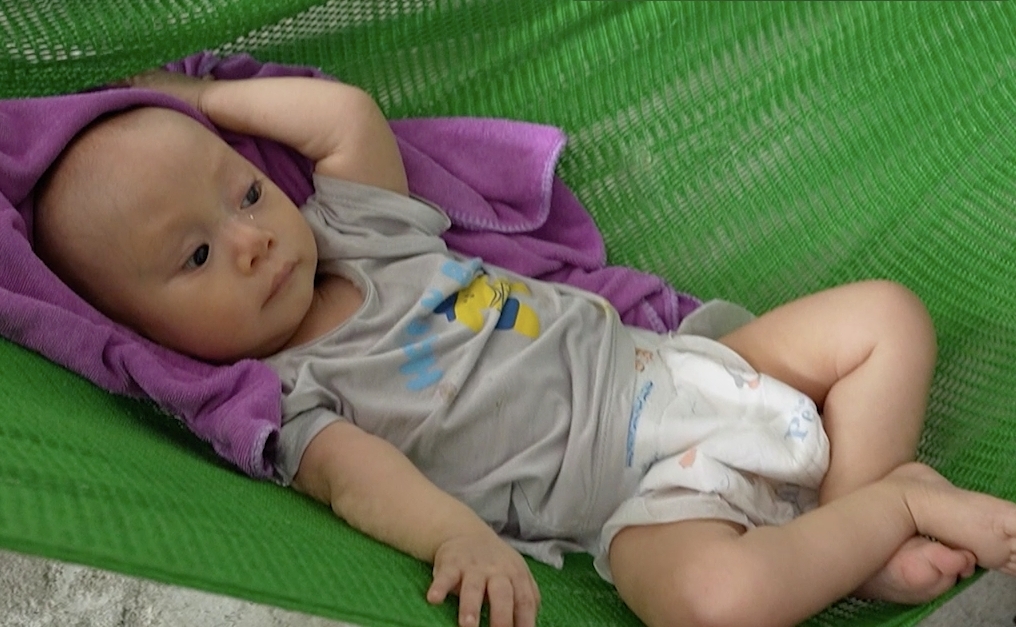 “Con tôi 9 tháng tuổi mà chỉ nặng có 5kg. Tôi không hiểu tại sao lại có quá nhiều bệnh tật cùng lúc ập đến với con mình. Tim tôi đau như có ai bóp nghẹt", người mẹ bất hạnh nói. Do thể trạng yếu nên hiện bé chưa thể can thiệp y tế để điều trị.