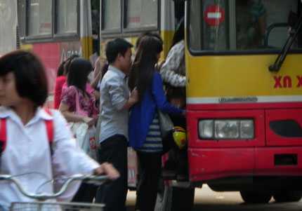 Đến nhà chờ xe buýt trên đường Phạm Ngũ Lão (phường Nguyễn Thái Bình, quận 1), gã dừng xe bên lề, õng ẹo tiến sát một người đàn ông rồi liên tục vuốt ve.