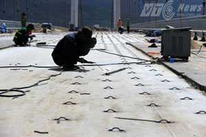 Được biết, hiện công tác bóc bỏ đối với lớp phủ mặt cầu hư hỏng đã hoàn tất, hệ thống đai thép neo đã được hàn hoàn thành và đang tiến hành công tác vệ sinh bề mặt.