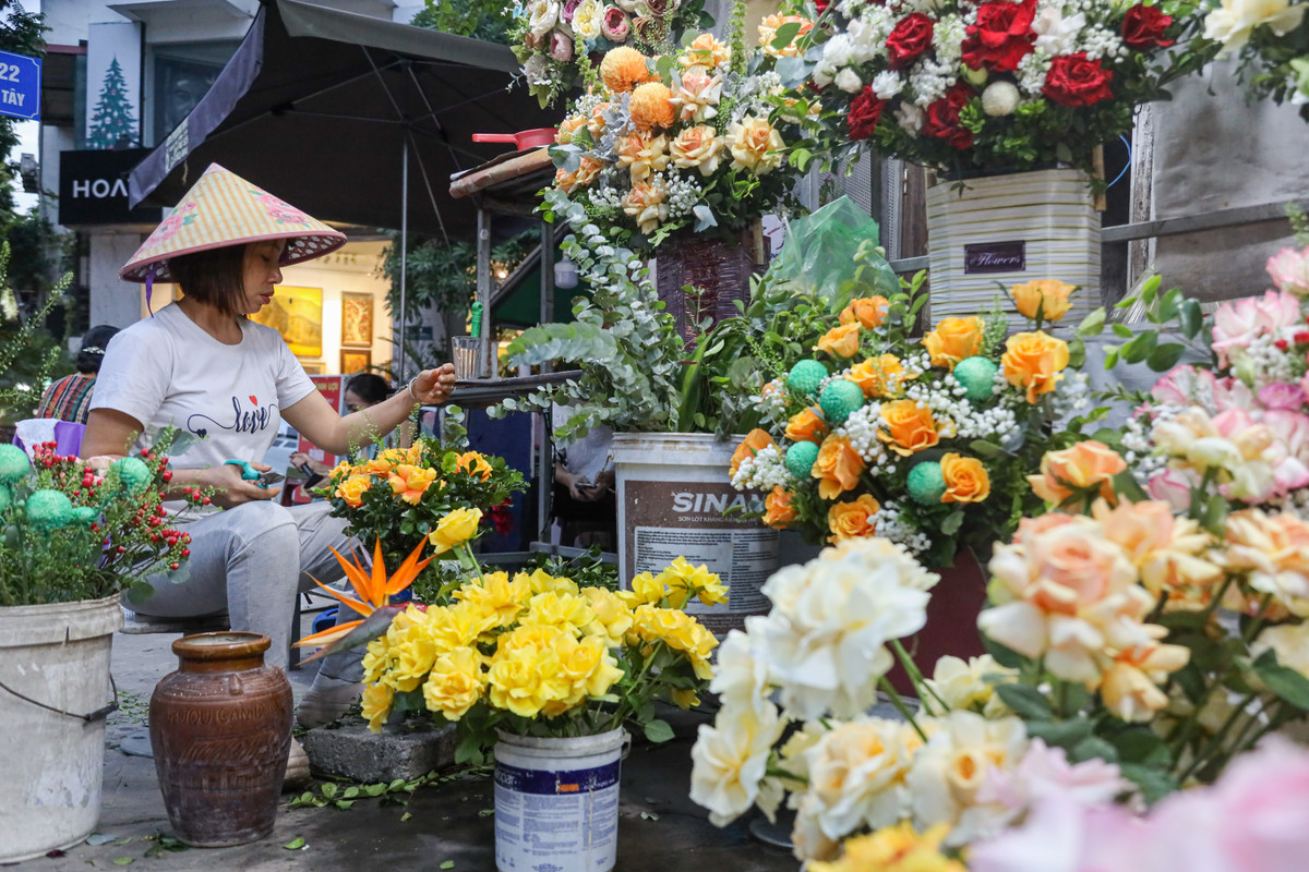 Sau một ngày tấp nập khách, đến tối muộn, những cửa hàng hoa vẫn sáng đèn, chuẩn bị hoa tươi cho hôm sau. "Đây là dịp tốt để tăng thu nhập nên chúng tôi không thể bỏ lỡ. Hiện mọi nhân sự trong nhà đã được huy động hết. Dù mệt nhưng vẫn phải chuẩn bị tốt nhất từng công đoạn, nếu không muốn mất khách", một người bán nói.