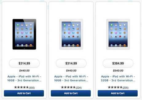Liên quan tới giá iPad giảm, một loạt các đại lý của Táo Khuyết bao gồm Walmart, Best Buy và MacMall đều đã bắt đầu giảm giá bán iPad thế hệ thứ 3 với mức giảm khá lớn khoảng 30%. Hiện tại, những thông tin về thời điểm ra mắt iPad mới vẫn chưa được tiết lộ.