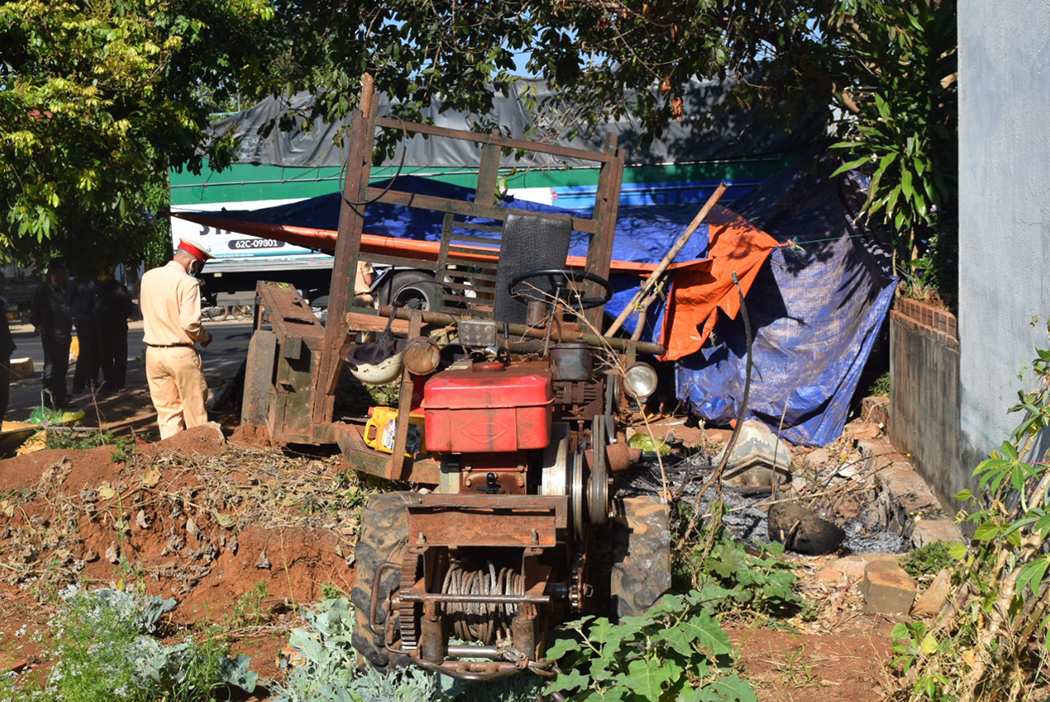 Thời điểm này, Tuấn lái xe công nông chở theo anh Vũ Việt Thuận (SN 1986) tông vào cháu N.H.B.T. (7 tuổi, trú cùng thôn) đang ngồi bán trái cây bên lề đường bên phải, cùng chiều di chuyển của chiếc xe.