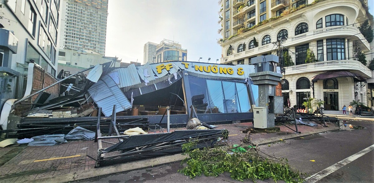 Trên các tuyến đường trung tâm Quy Nhơn, nhiều nhà hàng, quán cà phê sụp đổ hoàn toàn.