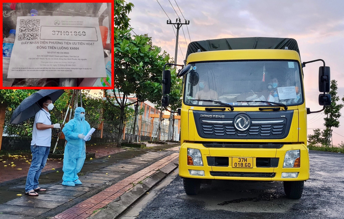 Qua quá trình xác minh ban đầu, lực lượng chức năng xác định, ngày 14/8, Võ đặt giấy nhận diện ưu tiên luồng xanh qua mạng xã hội Facebook. Đến ngày 15/8, Võ lái xe ô tô tải mang BSK: 37H01860 đến số 576 Trường Chinh (TP.Pleiku) chở hàng từ thiện đến Quận Bình Thạnh (TP. Hồ Chí Minh).
