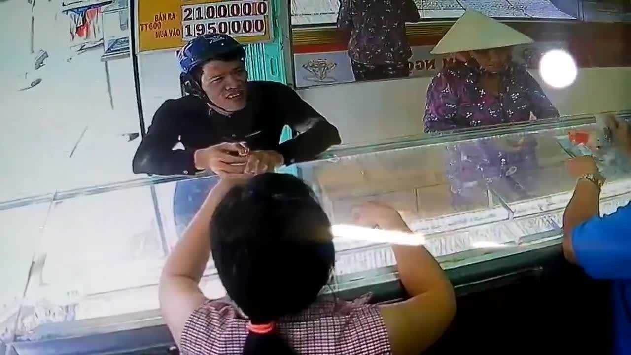 Gã đàn ông giả vờ lựa nhẫn vàng, đeo thử vào tay, đắn đo một hồi rồi bất ngờ leo lên xe máy phóng mất hút khiến chủ tiệm vàng không kịp đuổi theo.