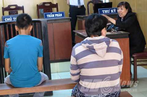 | Bị cáo Phan Tấn Lộc (áo xanh) và mẹ tại tòa phúc thẩm. Ảnh: Huy Phan |
