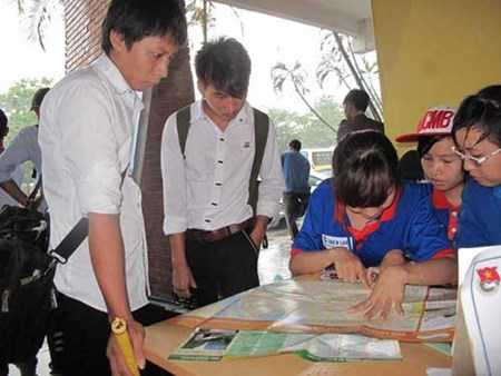 | Sinh viên tình nguyện hỗ trợ học sinh tìm phòng trọ năm 2014 (ảnh Tùng Anh) |