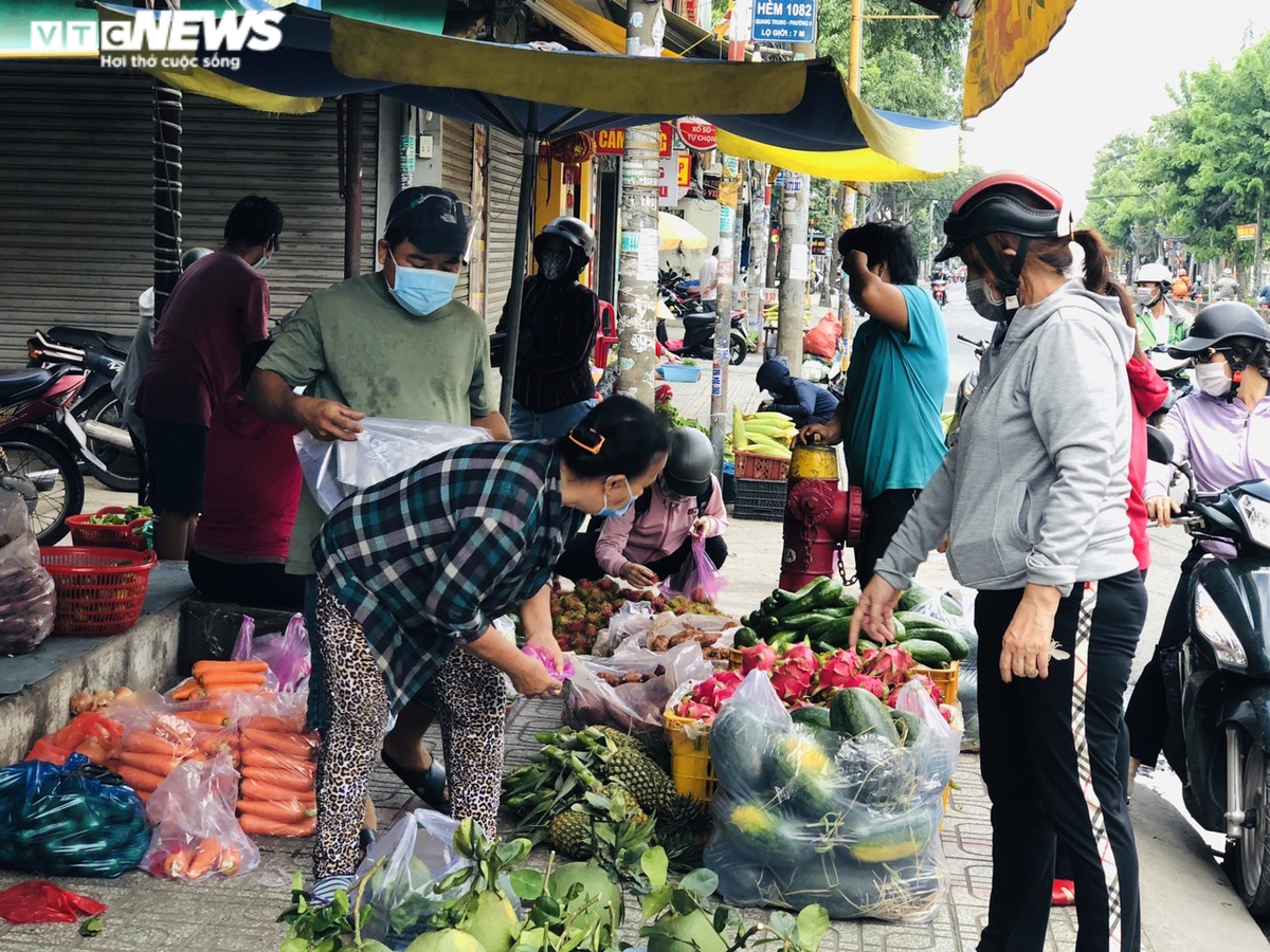 Chợ An Hội, quận Gò Vấp, TP.HCM đóng cửa, nhiều điểm bán lưu động của tiểu thương xuất hiện ven đường, người bán lẫn người mua đều mua nhanh, bán nhanh vì sợ lực lượng chức năng. Giá cả theo đó cũng bị đẩy lên cao.