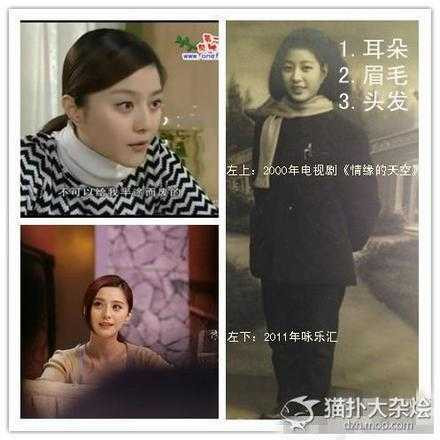 Hai cô cháu được cho là có nhiều nét khá giống nhau. Hình ảnh Phạm Băng Băng thời nhỏ và năm 2000 khi cô tham gia phim Bầu trời tình duyên.