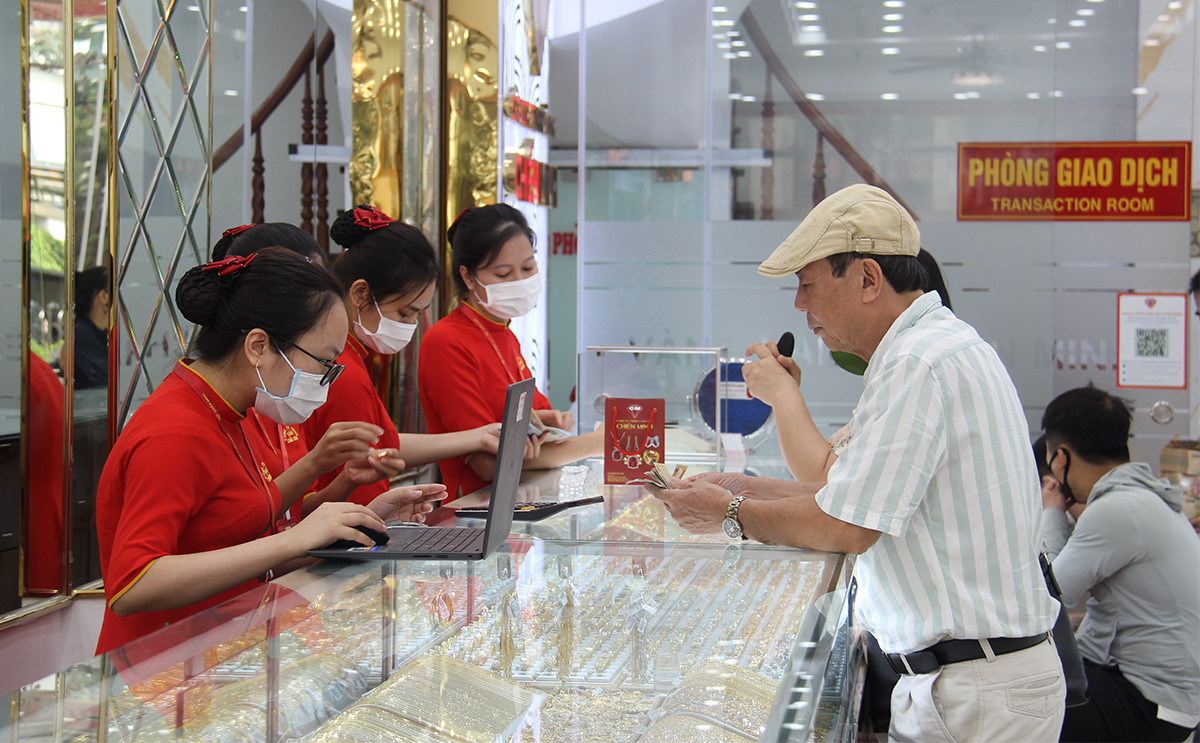 Giá vàng SJC ở khu vực Hà Nội và Đà Nẵng niêm yết ở mức 72,8 triệu đồng/lượng mua vào và 74,02 triệu đồng/lượng bán ra.