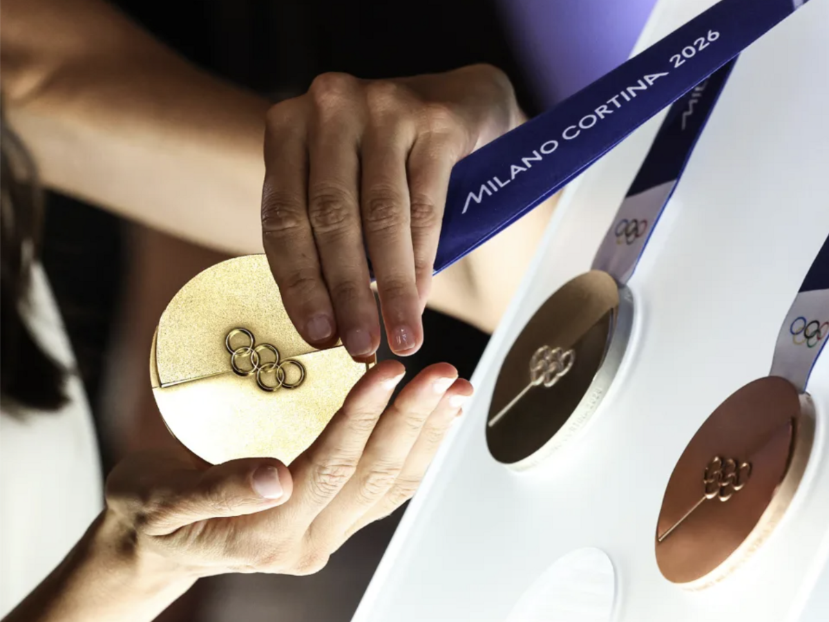 Huy chương của Thế vận hội Mùa đông 2026 trong lễ công bố tại Venice. (Nguồn: CNN)