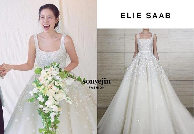 Trước đám cưới Huyn Bin và Son Ye Jin ngày 31/3, công ty quản lý của hai nghệ sĩ chia sẻ ảnh cưới, và sự tò mò của khán giả về váy cưới của Son Ye Jin được tiết lộ. Một trong hai mẫu váy cưới được nữ chính phim Hạ cánh nơi anh lựa chọn nằm trong bộ sưu tập Xuân - Hè 2022 của hãng thời trang cao cấp Elie Saab, giá 22.950 USD (hơn 500 triệu đồng).