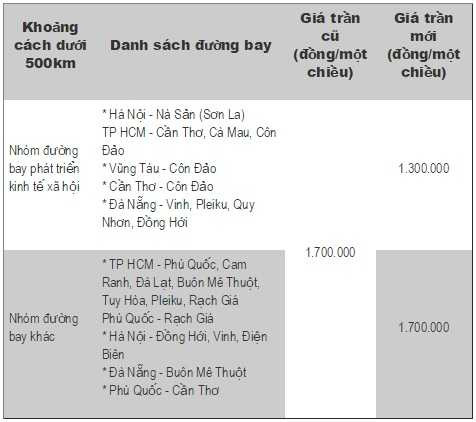 Một số đường bay ngắn dưới 500km được đề nghị giảm trần giá vé phổ thông từ 1,7 xuống 1,3 triệu đồng một chiều.