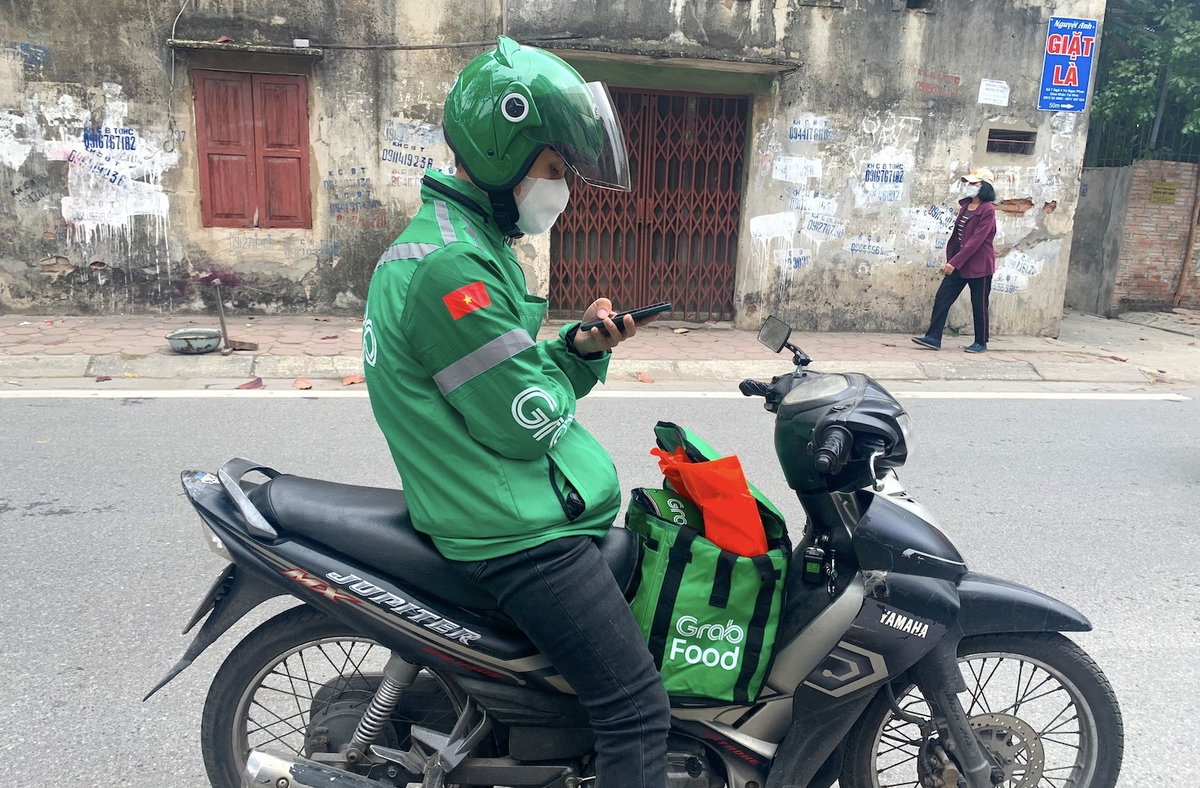 Một tài xế lặng lẽ đứng chờ đơn hàng.