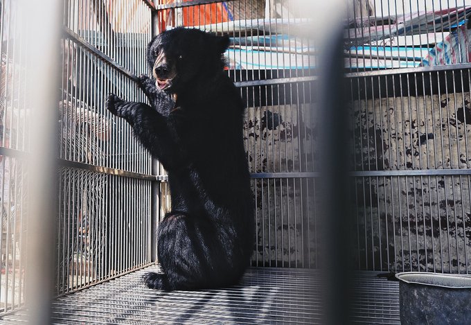 Chú gấu bị nhốt ngoài trời trong một chuồng kim loại giữa một công trường xây dựng tại thành phố Lạng Sơn, tỉnh Lạng Sơn vừa được giải cứu sáng 19/6.