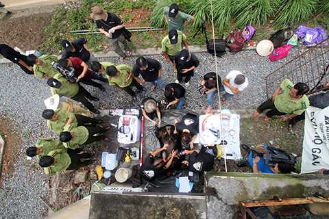 | Đội cứu hộ thực hiện công tác gây mê cho hai chú gấu trước khi di chuyển |