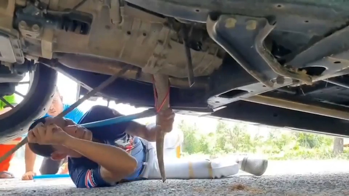 Giải cứu kỳ đà trốn trong khoang máy ô tô