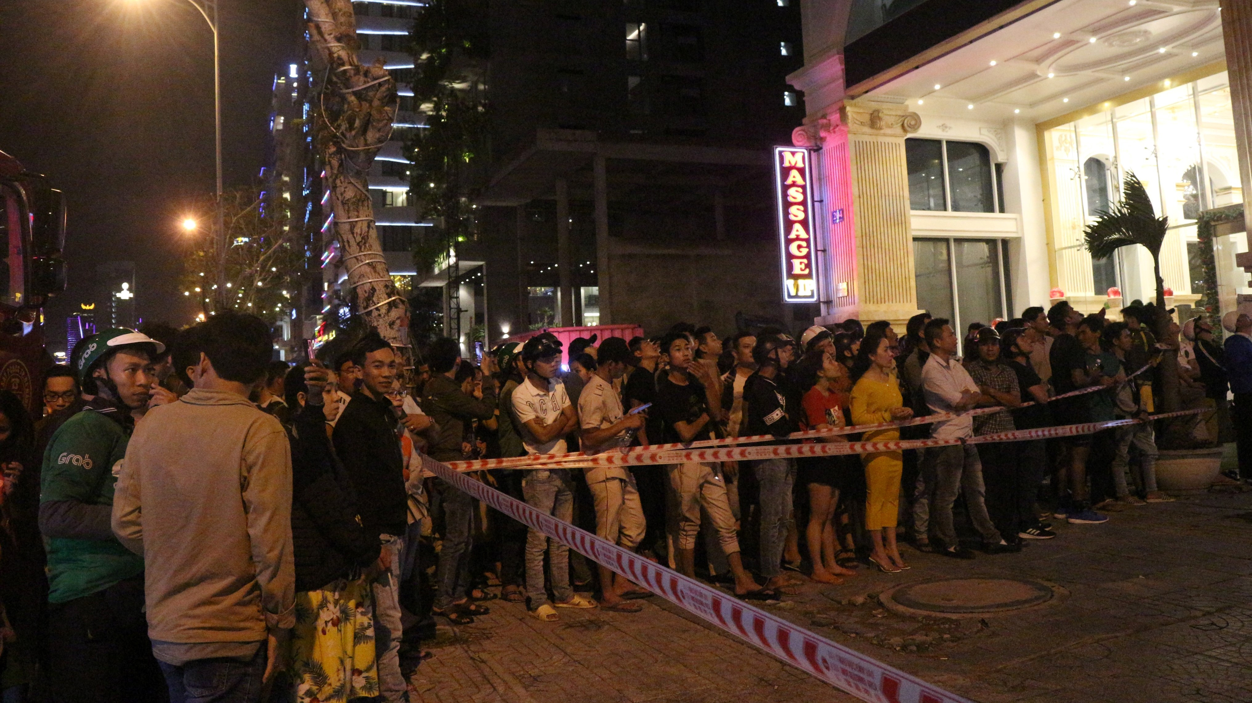 Lúc này nam thanh niên có biểu hiện không tỉnh táo, nghi ngáo đá, liên tục đánh đu, nhào lộn trên phần bảng tên. Chứng kiến thanh niên hành động nguy hiểm ở độ cao gần 100m, nhiều người dân hoảng sợ, gọi điện cho lực lượng chức năng.