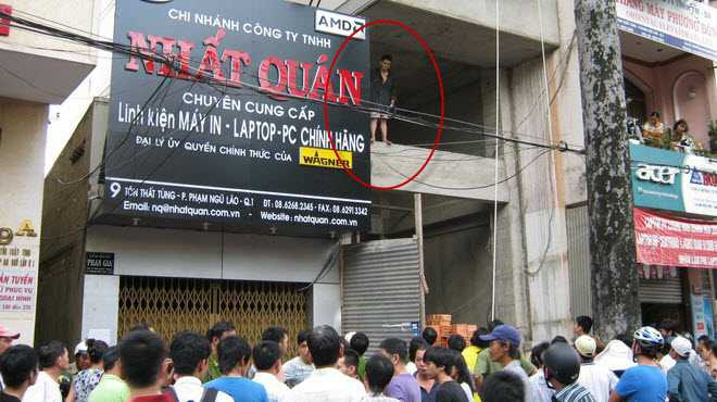 Khoảng 14g ngày 3/6, Nguyễn Thanh Sang (28 tuổi, Việt kiều Pháp) đã trèo lên lan can lầu 2 của ngôi nhà đang xây dựng (9 Tôn Thất Tùng, P.Phạm Ngũ Lão, Q.1, TP.HCM) đòi nhảy lầu tự tử.