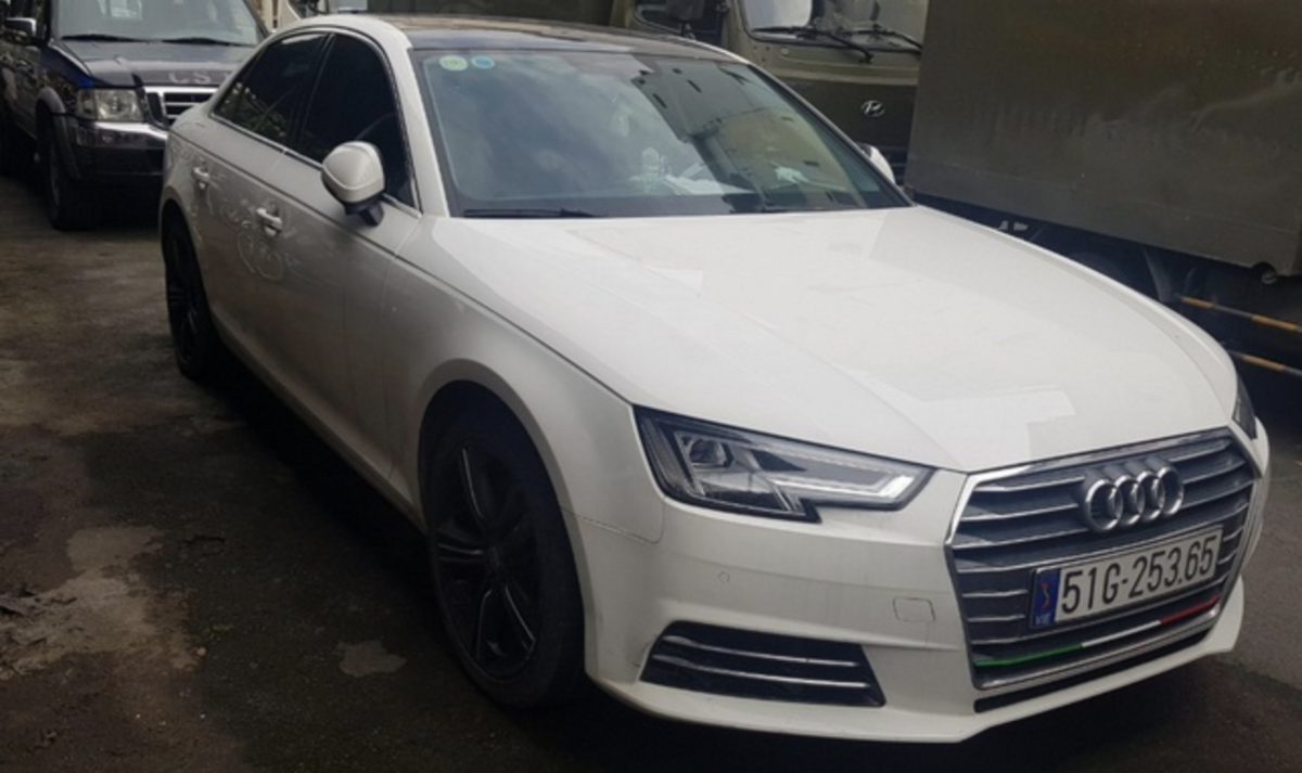 Công an tạm giữ chiếc xe ô tô của nghi phạm. (Ảnh: Khuất Nguyên)