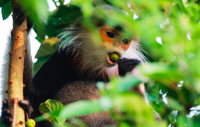 Con voọc chà vá chân nâu trước khi được lực lượng chức năng thả về tự nhiên.