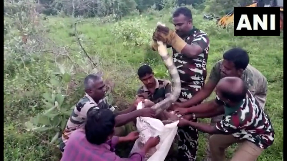 Con rắn hổ mang đực dài 4,6 mét đã được lực lượng chức năng Ấn Độ giải cứu và thả về rừng.