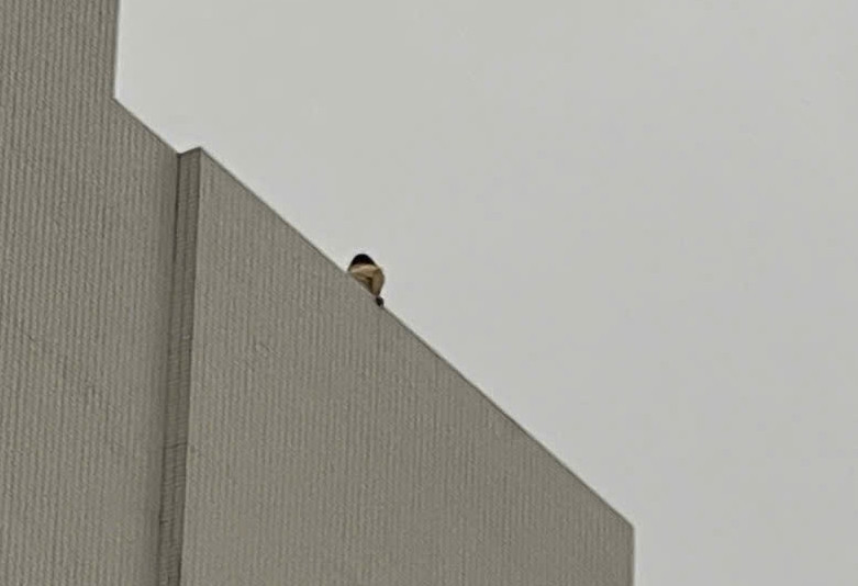 Người phụ nữ đứng trên nóc tòa nhà thuộc bệnh viện Bạch Mai. (Ảnh: MXH)