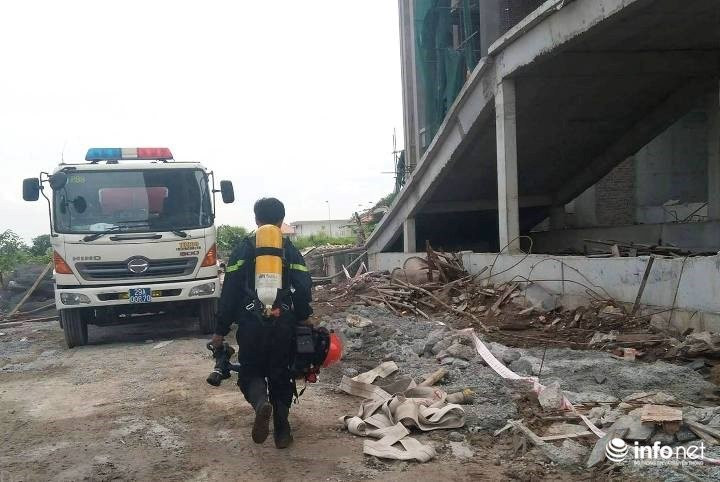 Tại hiện trường, đám cháy đã khiến khói lan từ tầng 14 bao trùm lên tòa nhà. Các công nhân chạy thoát cho biết vẫn còn một thanh niên lúc đó đang điều khiển cẩu tháp trên cao bị mắc kẹt lại, chưa xuống được.
