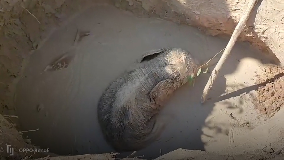 Con voi lang thang vào một trang trại gần khu rừng ở tỉnh Buriram, Thái Lan rồi bị trượt xuống hố sâu không tự lên được, lực lượng cứu hộ đã đến để giải cứu.
