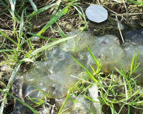 "Khi một loài săn mồi như chim diệc chộp lấy ếch ăn thịt, nó sẽ không tiêu hóa chất glucoprotein của ếch được và nhả ra ngoài. Glucoprotein khi tiếp xúc với nước sẽ trương phình lên và trôi theo dòng. Đây chính là thứ chất dịch mà nhiều người đã hỏi trong vài ngày qua".