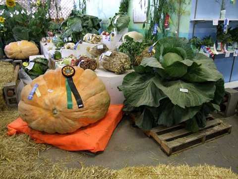 | Rau, củ, quả khổng lồ được trưng bày tại Hội chợ Nông nghiệp bang Alaska được tổ chức thường niên. |
