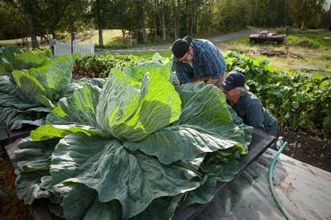 | Nông dân Alaska chăm bón bắp cải khổng lồ. |