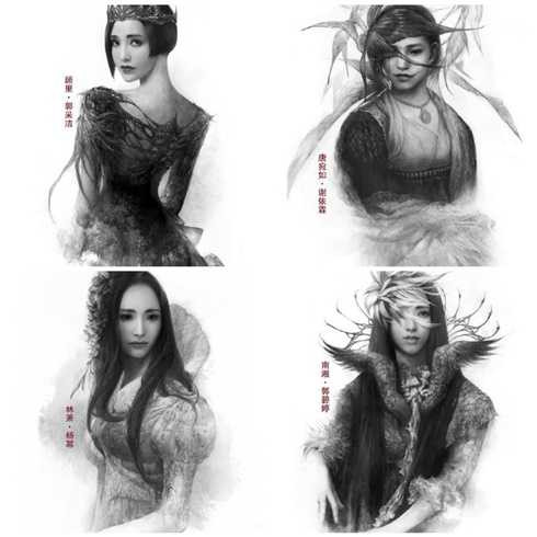Các nhân vật theo chiều kim đồng hồ: Cố Lý, Đường Uyển Như, Lâm Tiêu, Nam Tương